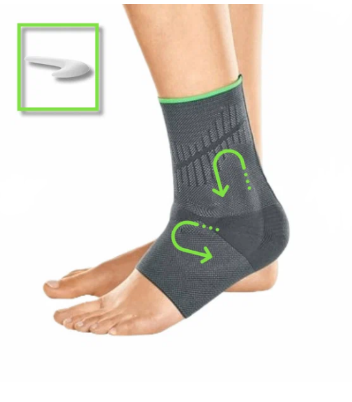 Массажное действие, оказываемое компрессионной тканью и эластичной вставкой, способствует улучшению кровообращения и рассасыванию гематом и отеков. Бандаж улучшает проприоцептивную чувствительность, за счет чего усиливается мышечная поддержка и стабилизируется голеностопный сустав